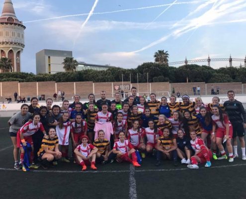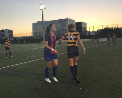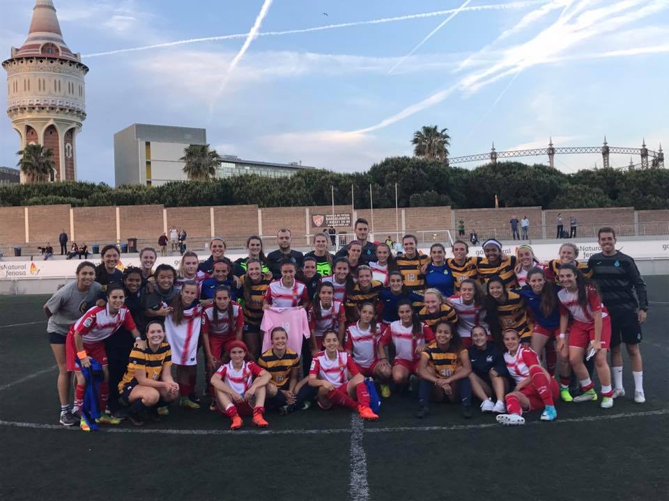 El equipo femenino de Cal Bers nos visitó este mes de Mayo. El equipo americano jugó contra el mejor club del mundo, el FC Barcelona y el RCD Espanyol. Contra el Barça B el partido acabó en empate, remontando un 3-0 adverso. El partido se disputó en la Ciudad deportiva Joan Gamper, lugar donde entrenan Messi, Neymar, Piqué…