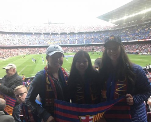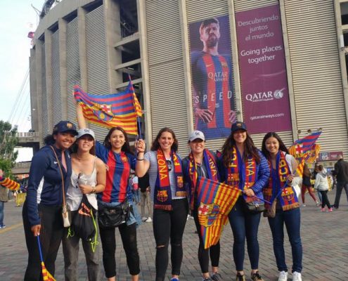 A lo largo del tour las actividades en la ciudad fueron espectaculares: padel surf, playa, visita cultural, visita al Camp Nou para ver un partido, comidas tradicionales….