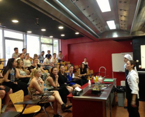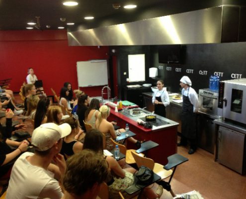 Cava Freixenet, líder mundial en cava, fue la primera parada en Sant Sadurní d’Anoia de este selecto equipo de futuros empresarios, en una experiencia internacional indispensable. El Campus CETT Alimara, hotel y residencia universitaria en la que se cursan los estudios de Turismo, acogió la segunda jornada de trabajo. La Universidad de Turismo ubicada en el barrio de Horta de Barcelona fue uno de los mejores escenarios que pudieron encontrar los jóvenes estudiantes de ‘Thoren Business School’ para tomar nota de las nuevas fórmulas de gestión y aprendizaje en el ramo de la hostelería, un sector puntal y básico en nuestro país. La visita incluyó un taller de tapas para familiarizarse con algunos rasgos de la excelente gastronomía autóctona.